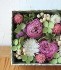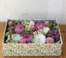 花びらが幾重にも重なったラナンキュラス、千日紅を主体に