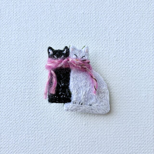 "monokuro's" 仲良しモノクロズ猫さんふたり 手刺繍/猫ブローチ
