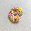 カラフルな砂糖菓子のこんぺいとうのような、かわいい小花をたくさん集めた小さなリース。