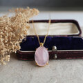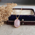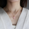 ブラジル産 桜色ローズクォーツのオーバルネックレス【金アレ対応】天然石・上品ピンク・大人可愛い