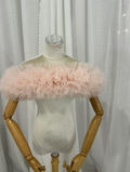 実例写真!取り外しオフショルダーのみ ピンク ソフトチュール 編み上げ 花嫁/カラードレス