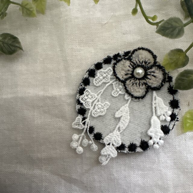 ミナペルホネンの刺繍生地でお作りしたハンドメイドのブローチです