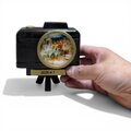 本モデルは専用の三脚がセットになっており、デスクや棚の上で本物のアンティークカメラのように自立します。