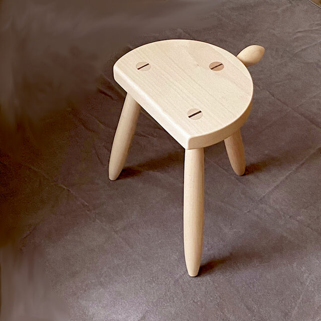 しっぽのような持ち手が付いた小さなスツール