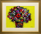 「Flowers」(NO.2608) 6号F ケント紙にアクリル絵の具 送料無料 画像をクリックすると全面画像になります