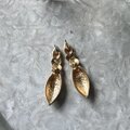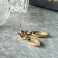 ゴールドトーンの流れるようなノットデザインと、シャープなマーキス型のチャームが揺れるエレガントなシルエット。