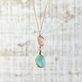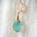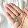 桜貝の淡くて優しい桜色の摘んでしまうと割れてしまう繊細さ、長い年月の間、海岸で石や砂と共に波に揉まれ、削られ角が取れ、丸みを帯びた海色シーグラス。この大きさになるまでに晴れの日も、雨の日も嵐の日もあったと思う。