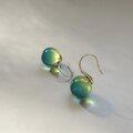 鮮やかなブルーグリーン~イエロー 天然琥珀 バルティックアンバー 一粒 ドロップ ピアス