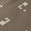 落ち着いたグレーの地に、市松模様と、花菱が美しい一着です。キャメルの帯ベルトが、静かなグレーに温かな残像を遺し、装いの純度を高めます。