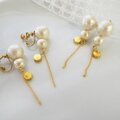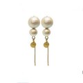 【ピアス】W コットンパール アイボリーカラー ゴールド チェーン プレート スタッド ピアス