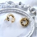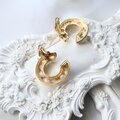 シックなブラックのワントーンコーデには、このゴールドの輝きが一番のスパイスになります。光を通すフィリグリー細工が、耳元でレースのように浮かび上がって本当に綺麗。片耳9gと適度な重みがあるので、パールのネックレスと合わせてクラシカルにまとめたり、あえてこれ一点で主役にするのも贅沢で素敵です。
