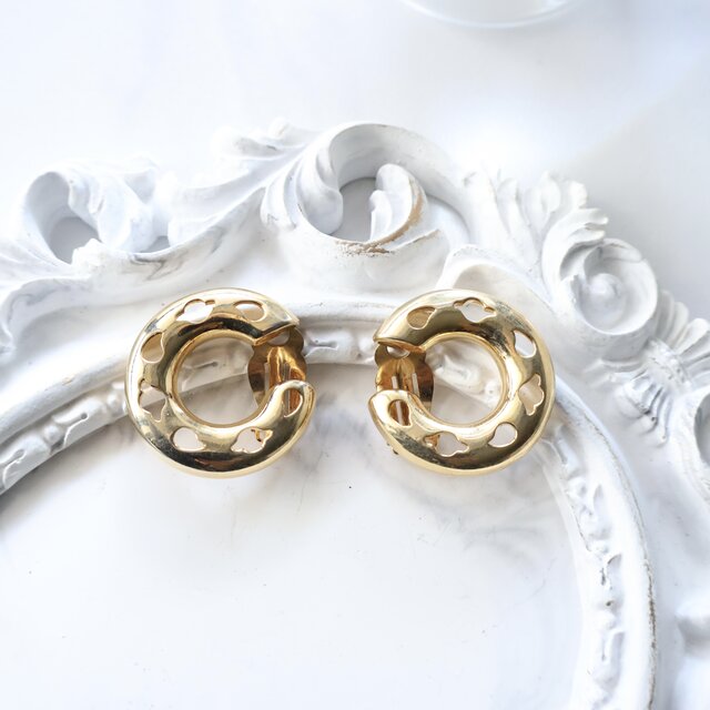 【フランス買付】ヴィンテージ ゴールド フィリグリー 透かし彫り イヤリング 1980s【1万円以上で送料無料】