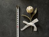 優しいホワイトのチューリップコサージュは、裏側にブローチピンをお付けしております。