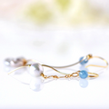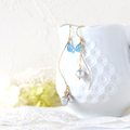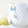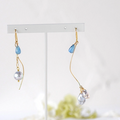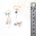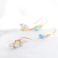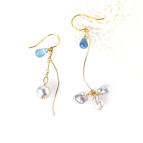 ウェーブラインのアシンメトリーピアス|アコヤバロックパール×ケシパール×アクアマリン|ロング・揺れるデザイン14kgf