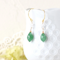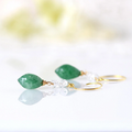 朝露のきらめき グリーンストロベリークォーツとハーキマーダイヤモンドのピアス 14kgf