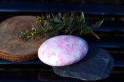 非常に大きなピンクチューライトのパームストーンです。