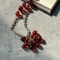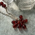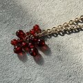 大小異なる透明感ある赤いビーズのクラスターが、ボリューム感のあるアクセントをつけます。