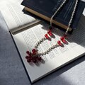 鮮やかなチェリーレッドが印象的なクラスタービーズネックレス。