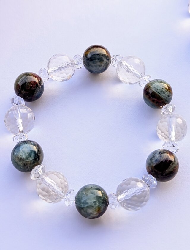 『進化への架け橋となるクリスタル✨グリーンカイヤナイト(無染色)&クリアクォーツのブレスレット』