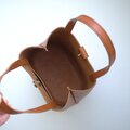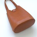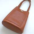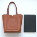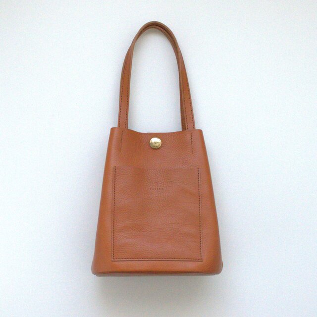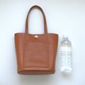 底は、革を2枚使いしっかりとさせていますので、置いたときにくたっとせず自立します。見ためよりも収納力がありますので、普段使いに使いやすい大きさです。
