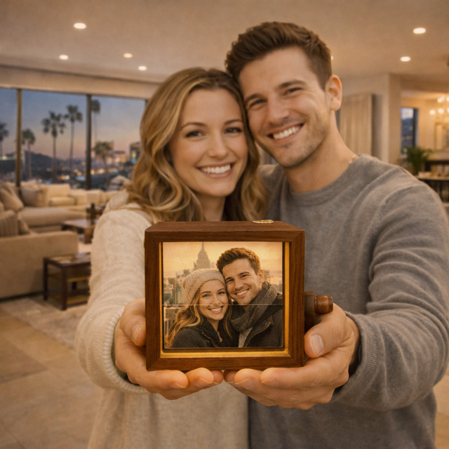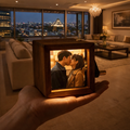 記念日の思い出を回して楽しむ木製フォトボックス|写真入り・名入れ可|恋人への贈り物に