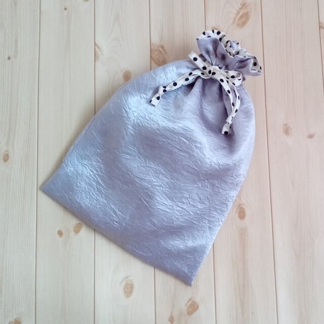 シューズケースにもなる、サテンの大きめ巾着袋です。