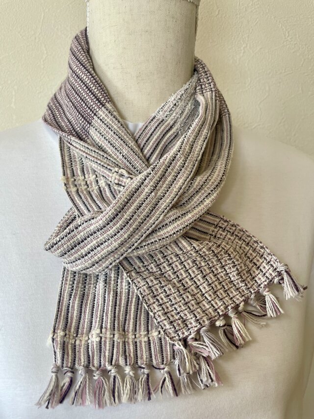 母と姉たちへのプレゼントと自分用に買わせてもらいました。各々好きなものを選んでもらう楽しい企画を考えました。それぞれの好きそうな色合いを選びました。選ぶのも楽しかったです。春先,これをつけると、気分が上がりそうです。 素敵なマフラーをありがとうございました。