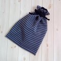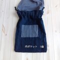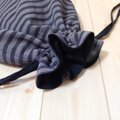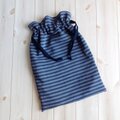 シューズケースにもなる、ボーダーの大きめ巾着袋です。
