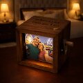大切な思い出の写真を、手でゆっくり回して楽しめるオーダーメイドの木製フォトボックスです。