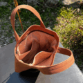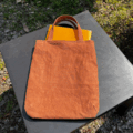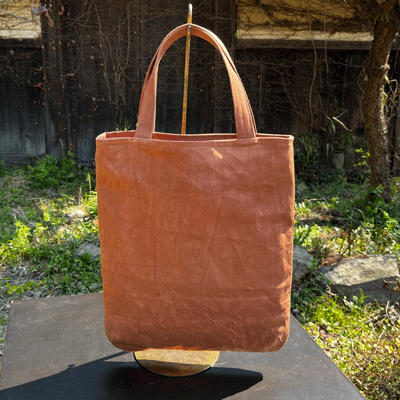 織に、藍染と柿渋の重ね染めが粋な個性を醸し出し、素敵な作品です。大切に愛用します。