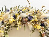 ブルーのラクスパーや白い花かんざしなど
