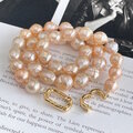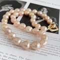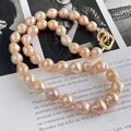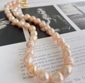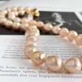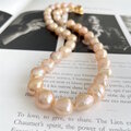 アプリコットカラーの天然色 ほんの少しシュリンクなバロックパールのチョーカー 1点のみ