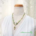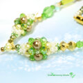 ネックレス部分には、繊細に編み上げたビーズパーツが、軽やかでやさしい存在感でデコルテを彩ります。