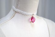 【受注製作】レジンアート 鉱物モチーフとタティングレースとサテンリボンのチョーカー〈緋色の旋律〉