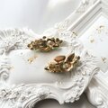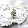 グリーンとオーロラのラインストーンが繊細に配され、光を受けるたびに表情を変える美しいデザインです。