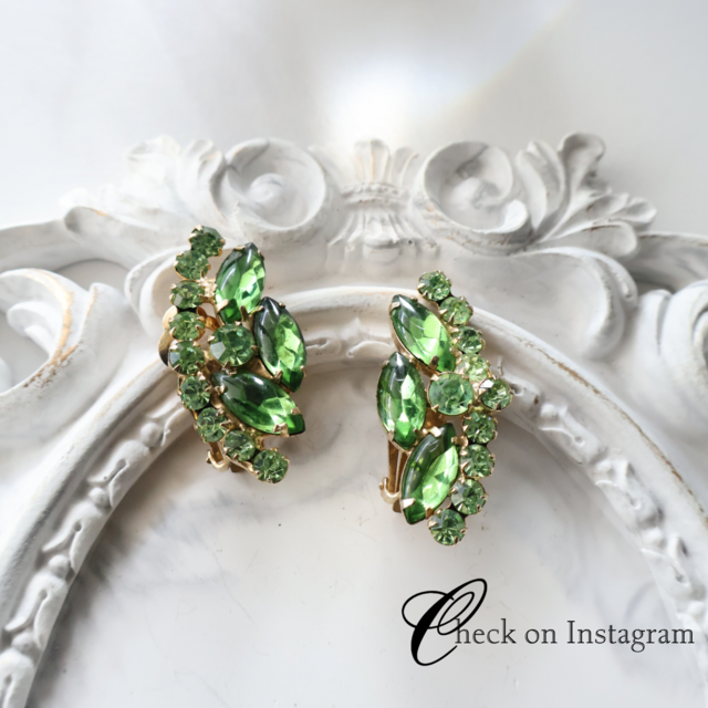 ・素材:メタル(ゴールドトーン)/ラインストーン(グリーン・オーロラ)