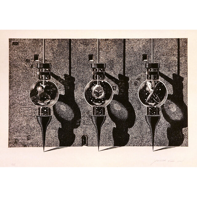 子犬は空中遊泳の夢を見るか?迅速丁寧な配送をしていただきました。 大胆で緻密。明るく素敵な木口木版です。