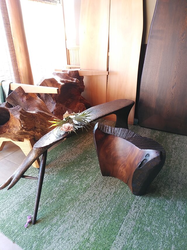 ケヤキの塊をつかったスツール。