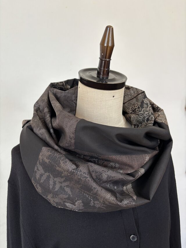 アンティーク着物、泥大島紬のパッチスヌードAです。