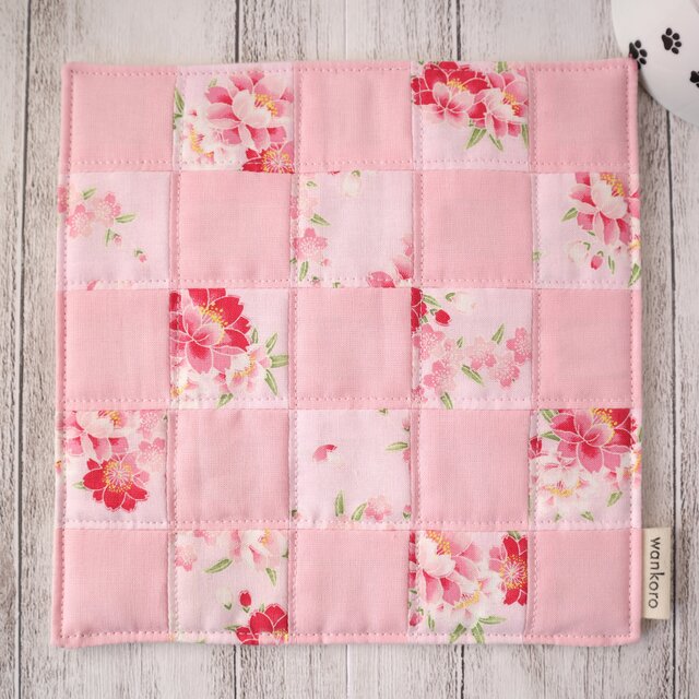 ペット用お食事マット 小型犬 猫 桜 フードマット ご飯マット ランチョンマット 犬グッズ パッチワーク ギフト No.405