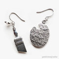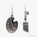 絵の具パレットと刷毛(ハケ)の左右違う画材モチーフのフックピアスです