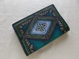 拭き染めとはベースになる色で一度染めた後、刻印の輪郭をテルテル坊主のような筆で適度にぼかす技法です。そうすることのより、アンティーク風になり暖かい印象を与えています。
