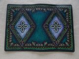 タンローに刻印を配列し、拭き染めという技法で自家染色しました。