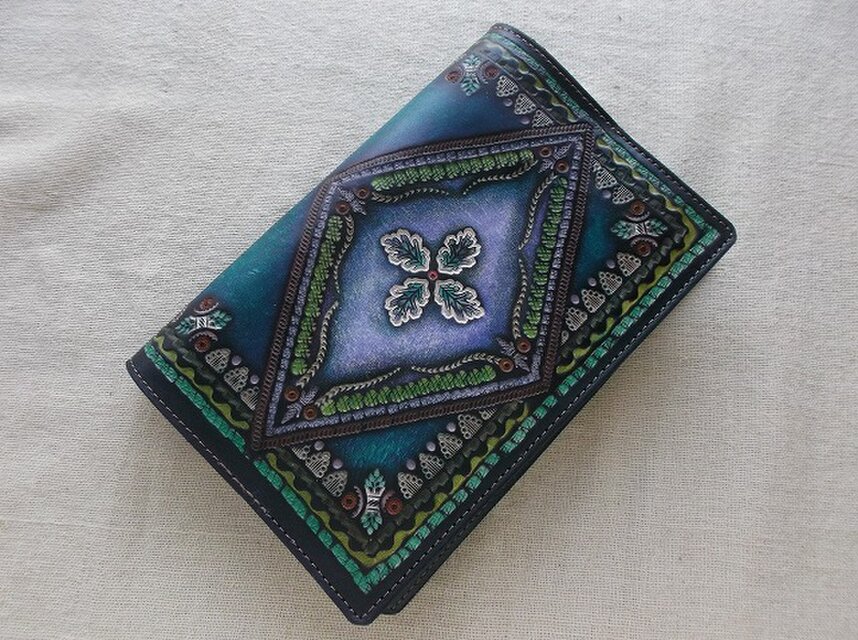 刻印配列や染色はさることながら、使い込むほどに、経年変化で艶が増しより使いやすくなることがほかの素材のブックカバーにはない最大の特徴だと思います。