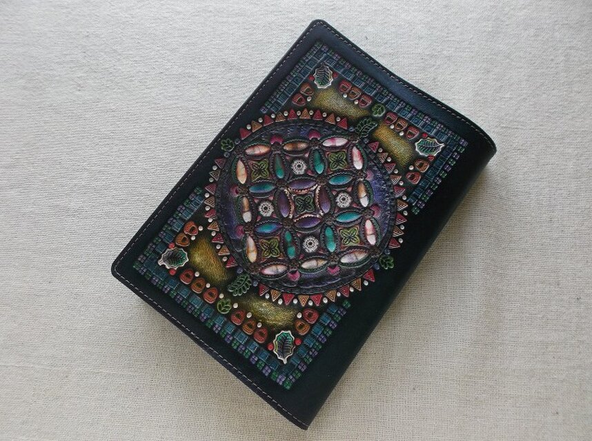 刻印配列や染色はさることながら、使い込むほどに、経年変化で艶が増しより使いやすくなることがほかの素材のブックカバーにはない最大の特徴だと思います。