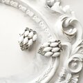 【フランス買付】ヴィンテージ シルバー×ミルクガラス&ラインストーン イヤリング 1980s【1万円以上で送料無料】