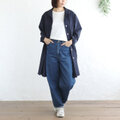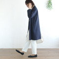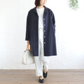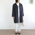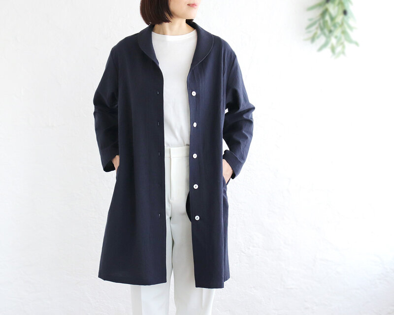 春夏秋と 軽やかに羽織る 桐七炊きコットンリネン ショールカラーコート(ネイビー)CO08