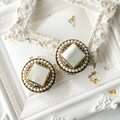 「今日は優しげな雰囲気でいたいな」という日には、エクリュ(生成り)やベージュのざっくりとしたローゲージニットに合わせてみては。マザーオブパール特有の、内側から発光するような白は、布の質感と重なることでより奥行きを増します。人工的な輝きとは一線を画す、天然素材ならではの温もりが、肩の力の抜けた大人の洗練さを引き立ててくれます。