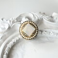 中央には、美しいテリを持つ大きなマザーオブパールを贅沢に使用。周囲をゴールドのベゼル(枠)で囲むことで、パールの繊細な輝きを引き締め、高級感のある佇まいに仕上げています。