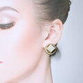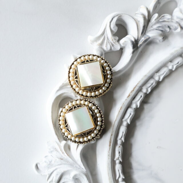 【アメリカ買付】ヴィンテージ ゴールド×マザーオブパール ラウンドイヤリング 1980s【1万円以上で送料無料】